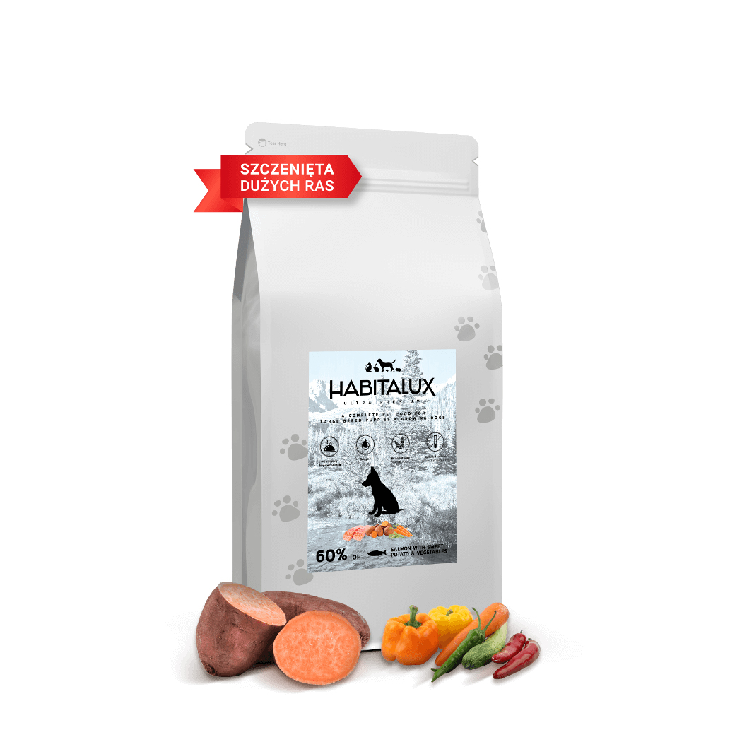 - 60% łososia – lekkostrawne białko zwierzęce bogate w aminokwasy co wspomaga wzrost i rozwój!